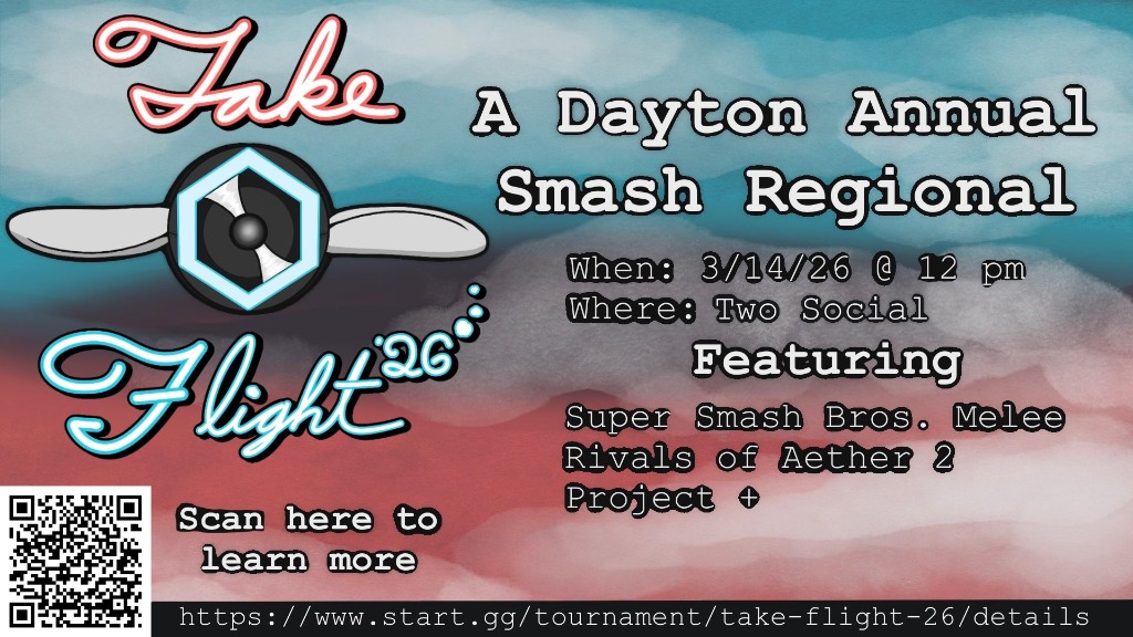 Welcome to Take Flight 2026! Located at Two Social on 3rd Street in downtown Dayton, we are hosting the region's premier platform fighter tournament. Come enjoy the space, grab a drink at the bar, and compete for glory.
